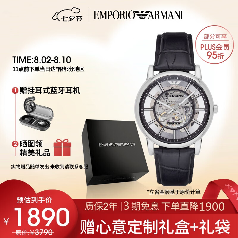 安普里奥·阿玛尼(Emporio Armani)手表男士 黑武士皮带镂空机械腕表七夕情人节礼物送男友AR1981价格:1990.00元!