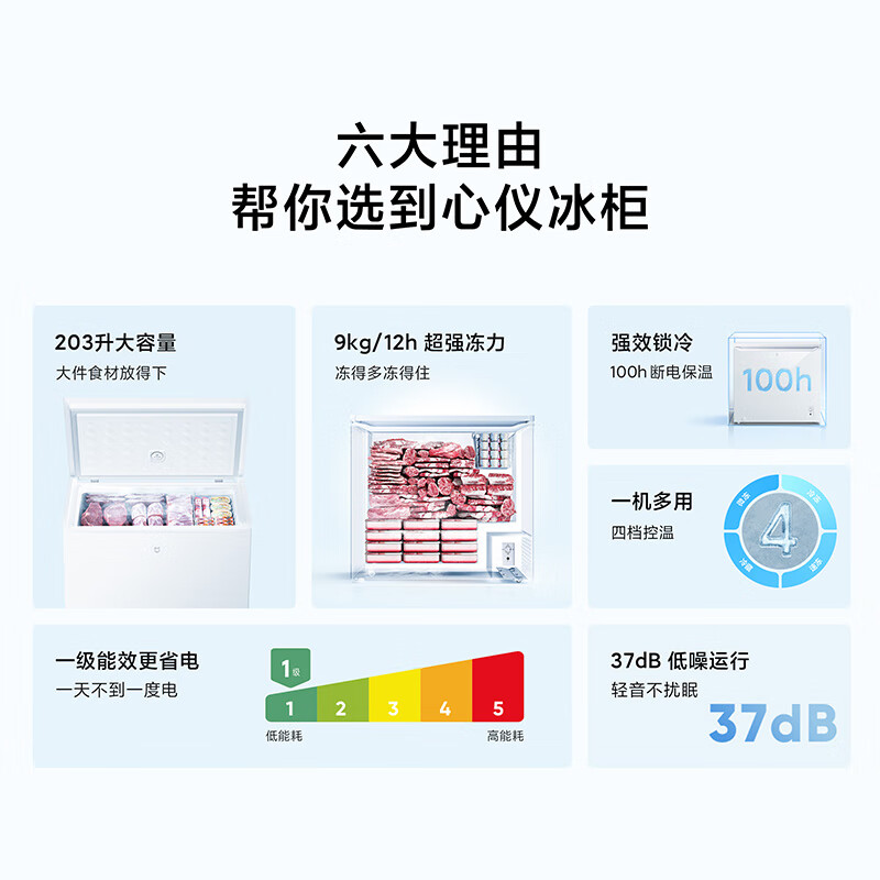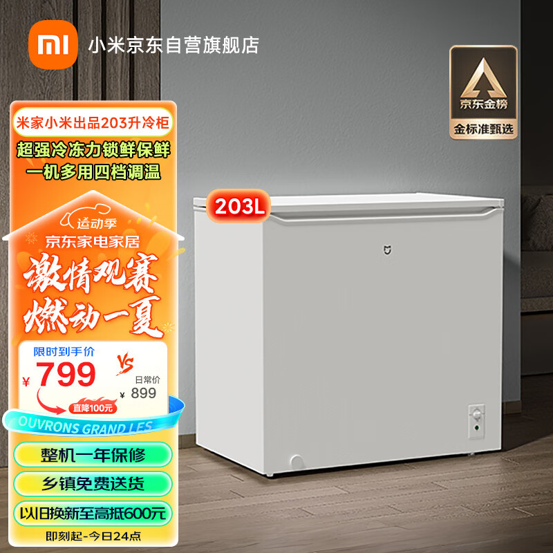 米家小米203升家商两用囤货大冰柜冷藏冷冻转换冷柜 一级能效卧式冰箱节能低噪顶开门BD/BC-203MDM价格:799.00元!