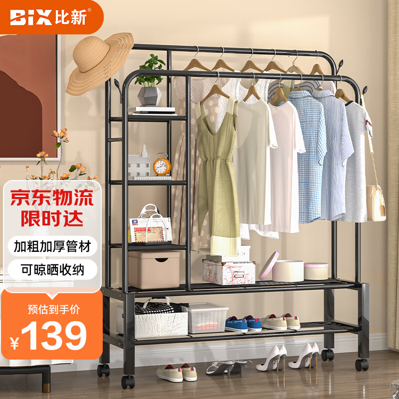 比新晾衣架落地衣架挂衣杆卧室晒衣架侧置物网衣架子1.2米BX-L5601B价格:159.00元!