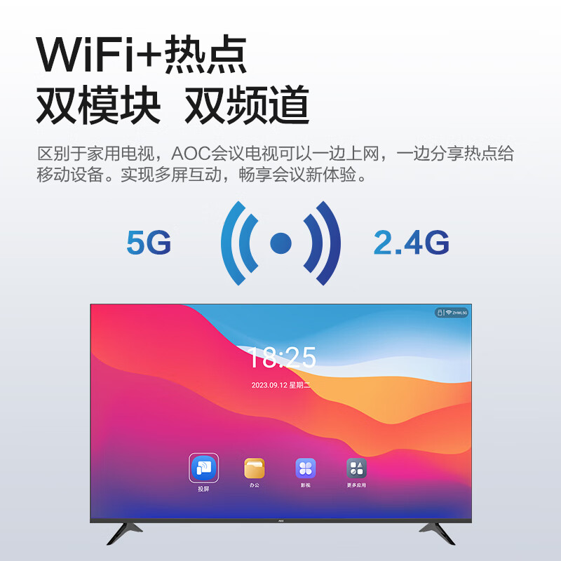 AOC会议电视4K超清移动电视会议室显示屏投影投屏商用电视智能显示智慧屏65英寸65NV+移动支架价格:2699.00元!
