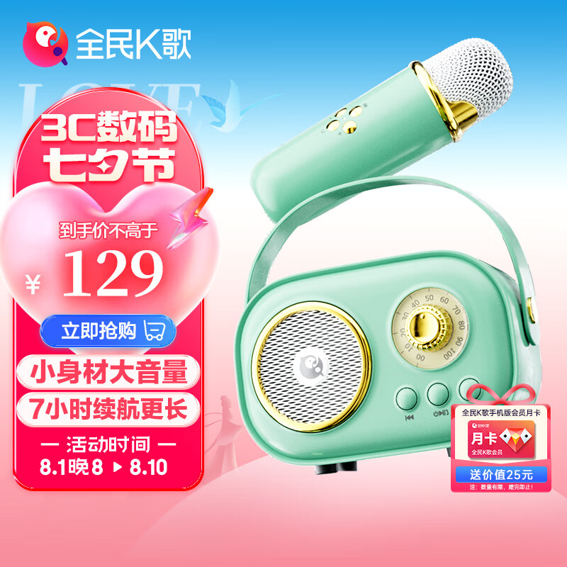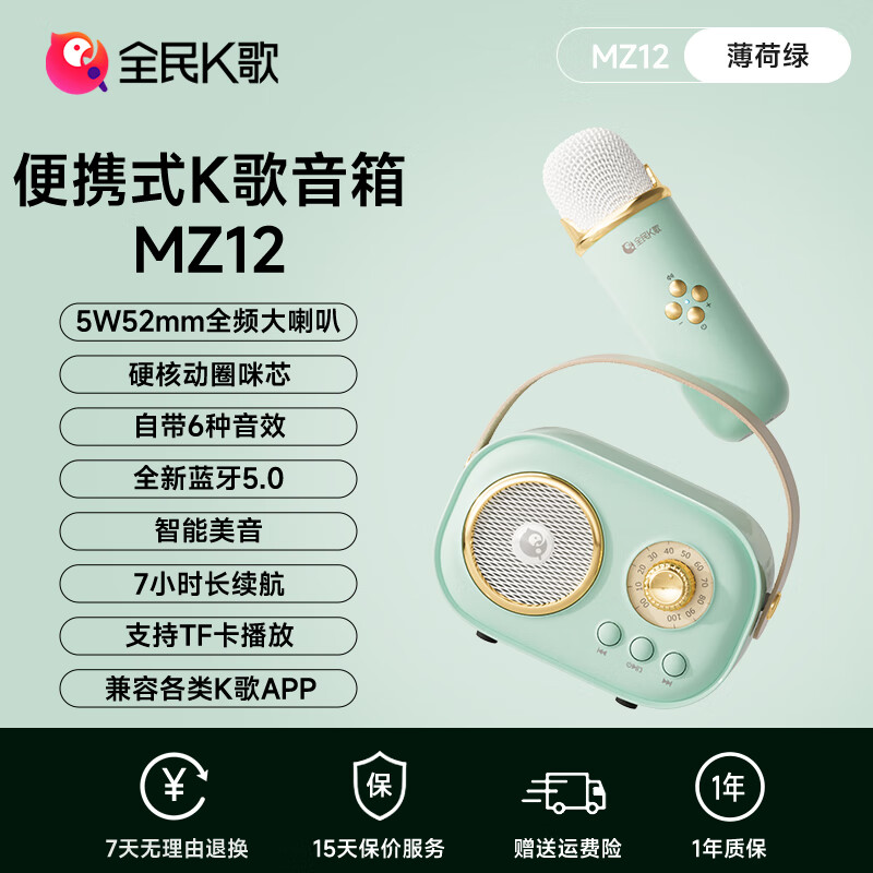 K歌 便携式无线儿童麦克风K歌音箱套装全能兼容各类app FM调频收音自用送礼必选户外MZ12薄荷绿价格:129.00元!