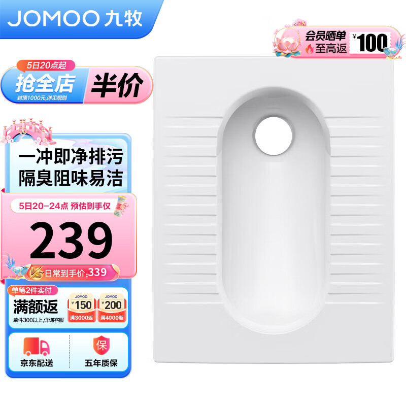 九牧(JOMOO)蹲便器家用蹲坑防臭易清洁陶瓷后排水不带存水弯14136-1/11P-1价格:239.00元!