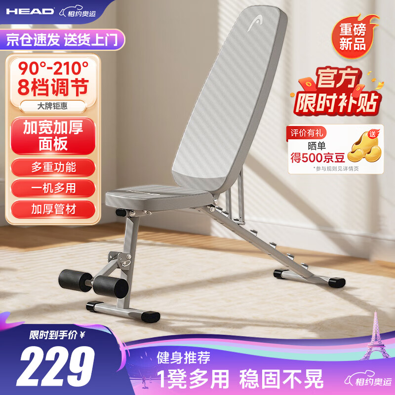 HEAD海德哑铃凳多功能健身椅卧推凳仰卧板腹肌健身器家用健身器材价格:229.00元!