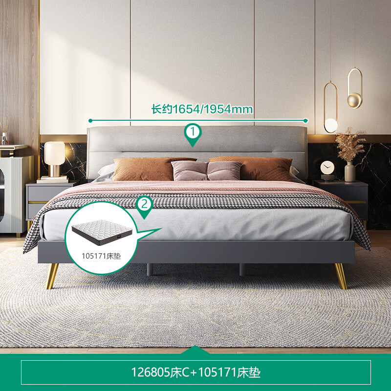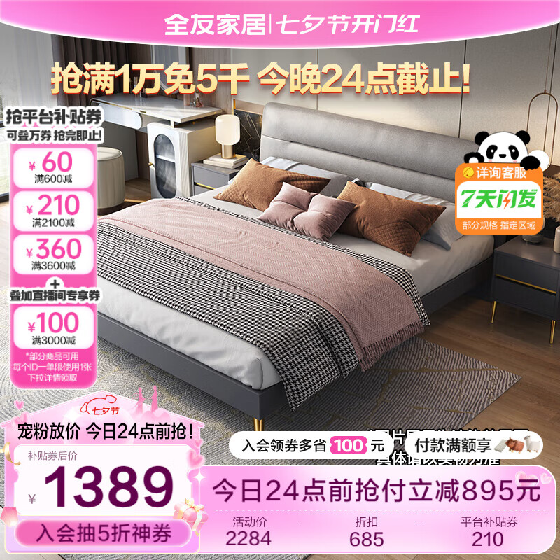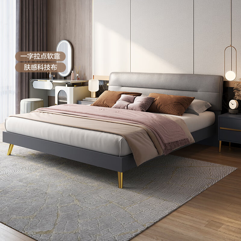 全友家居 主卧室轻奢科技布艺床板式床家用高脚双人床1.5x2米126805价格:2284.29元!