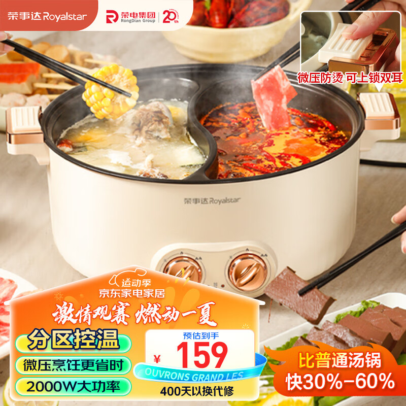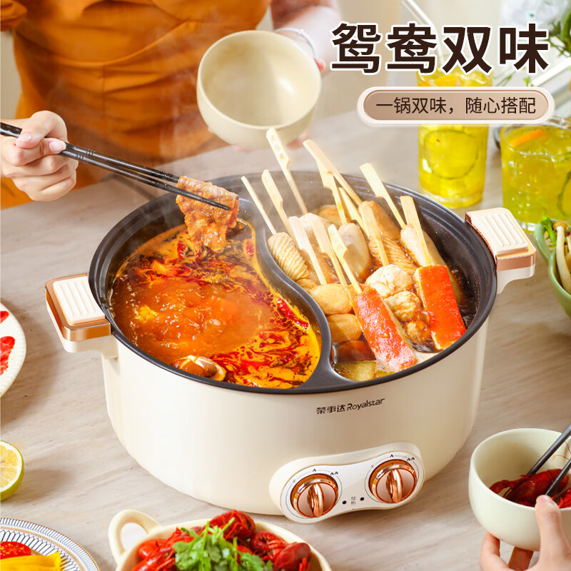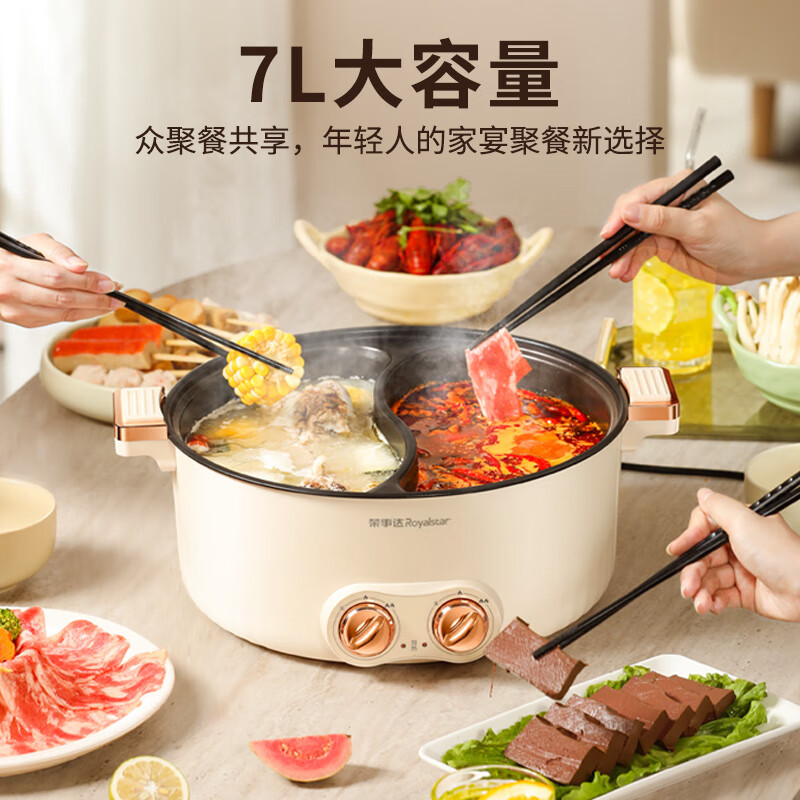 荣事达(Royalstar)鸳鸯电火锅7L微压火锅 电炒锅 分区控温家用电热锅 一体锅 多功能不粘料理涮肉锅火锅锅RHG-70X2价格:159.00元!