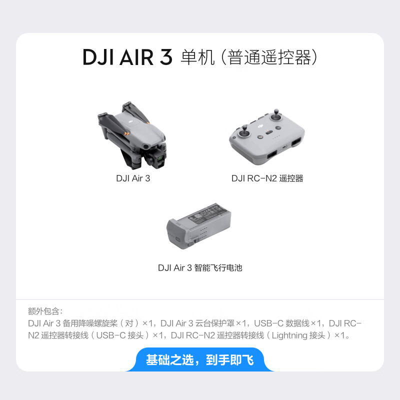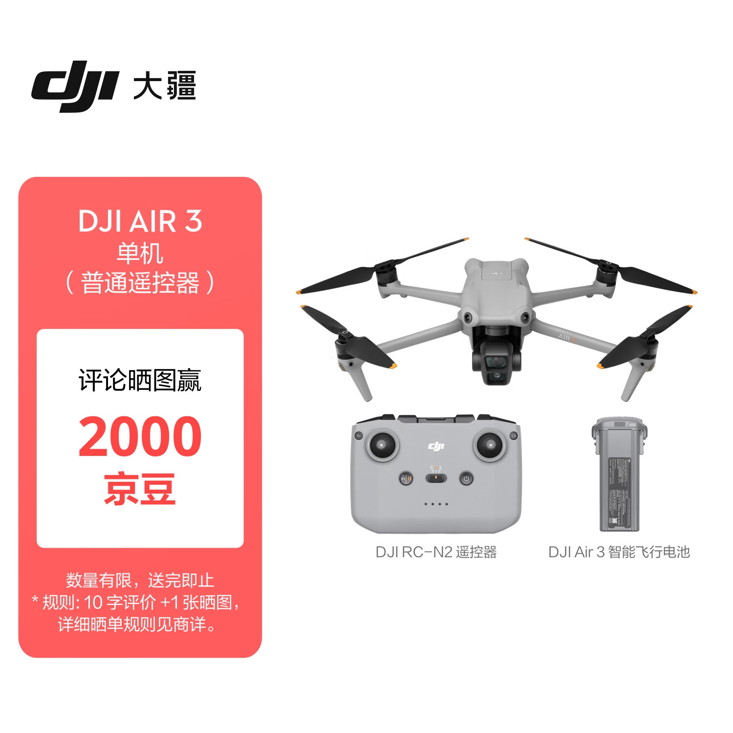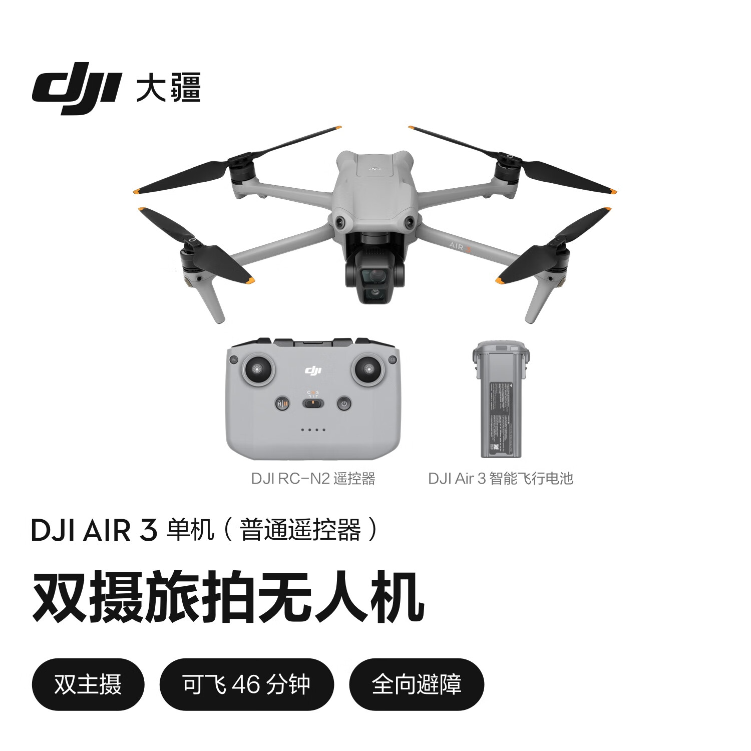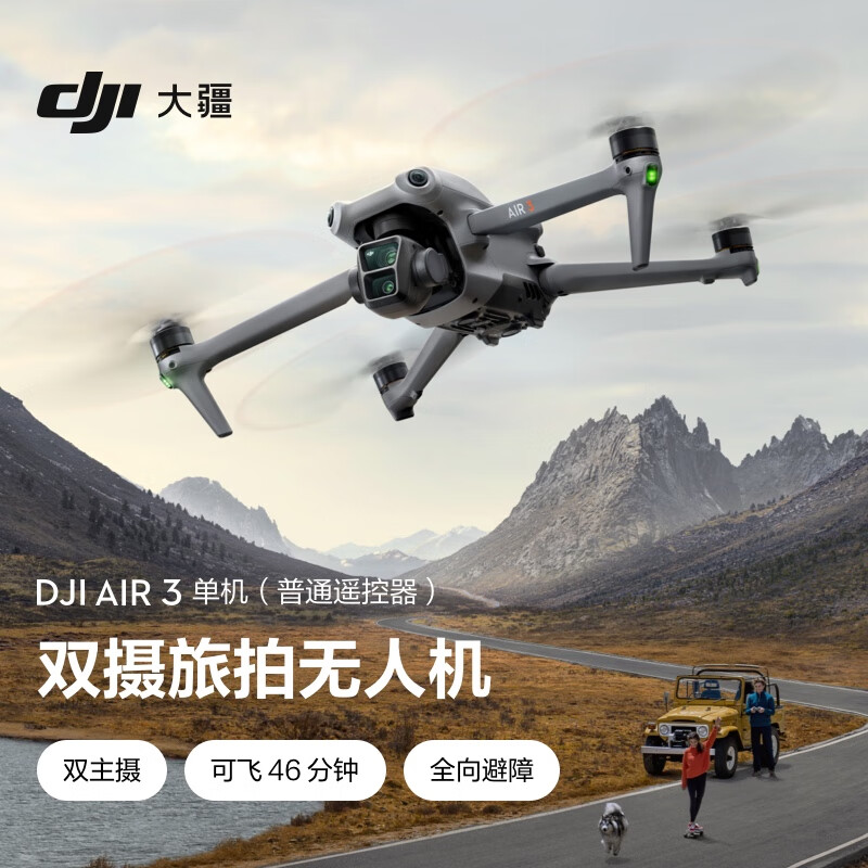 大疆 DJI Air 3 单机(普通遥控器)航拍无人机 中长焦广角双摄旅拍 全向避障 + 随心换2年版实体卡价格:8176.00元!