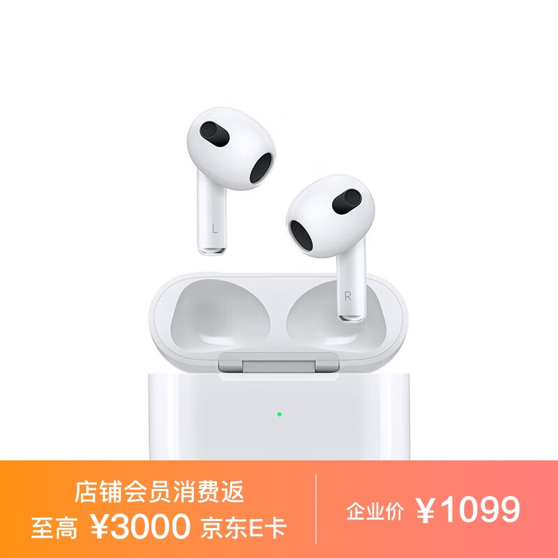 Apple AirPods (第三代) 配闪电充电盒 无线蓝牙耳机 适用iPhone/iPad/Watch MPNY3CH/A*企业专享价格:1169.00元!