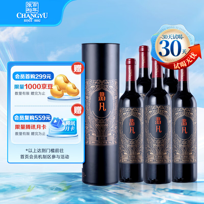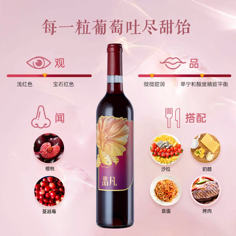 张裕 翡凡凤舞游鲤赤霞珠甜红葡萄酒750ml*6瓶整箱装国产红酒送礼价格:299.00元!