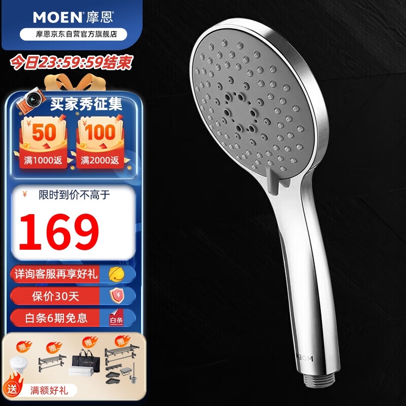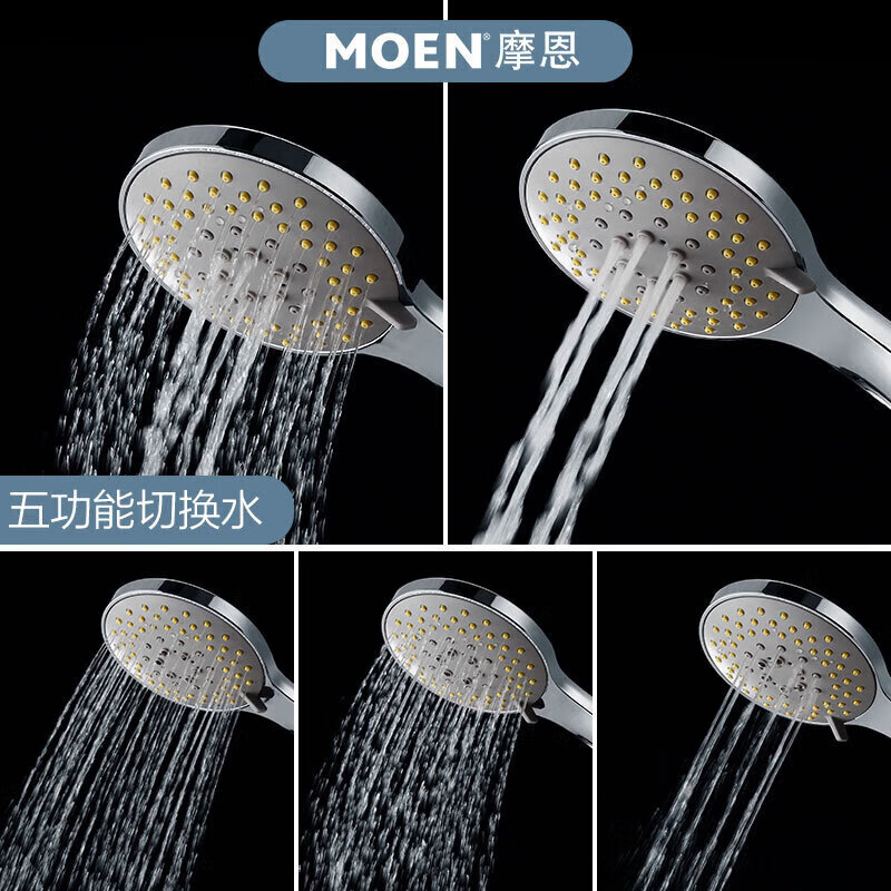 摩恩(MOEN)手持淋浴花洒喷头大面板莲蓬头淋浴头超薄节水五功能HH5001价格:169.00元!