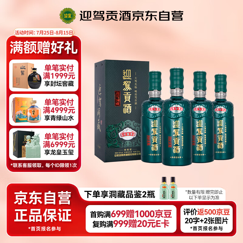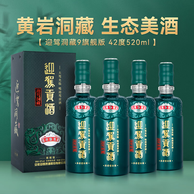 迎驾贡酒 生态洞藏9 浓香型白酒 42度 520ml*4瓶 整箱装价格:1159.00元!