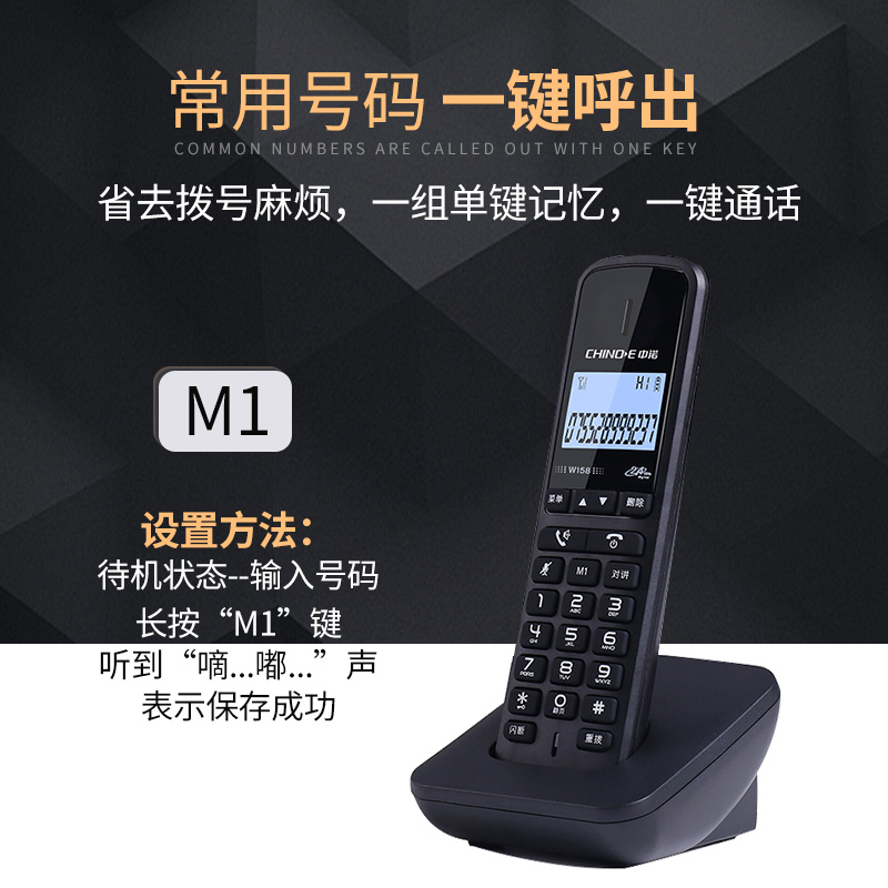 中诺无绳单机电话机中文菜单白屏背光单键拨号无线主机座机固定电话W158黑色价格:108.00元!