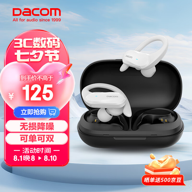dacom AthleteTWSlite真无线运动蓝牙耳机七夕跑步防水挂耳式耳机双耳5.3音乐入耳适用苹果华为小米白价格:169.00元!