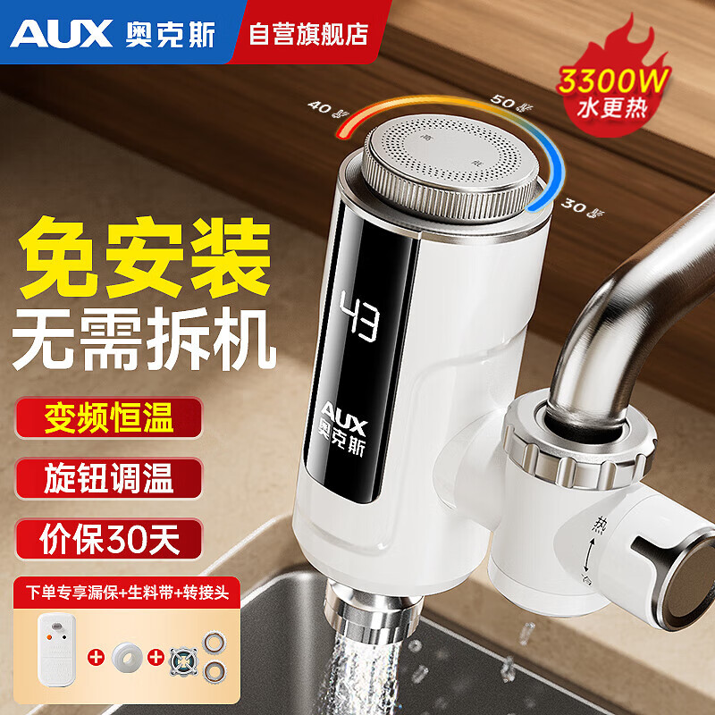 奥克斯电热水龙头免安装快速加热器厨房冷热厨房宝即热式电热水器STJ1接驳式恒温白加漏保价格:219.00元!