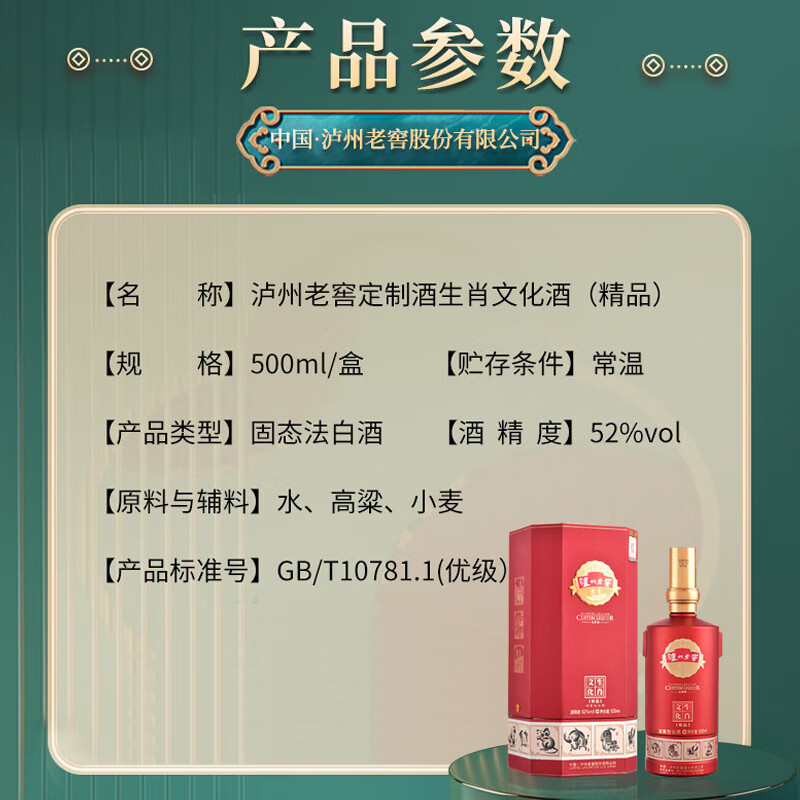 泸州老窖泸州老窖 生肖文化 精品52度 单瓶配置参数: