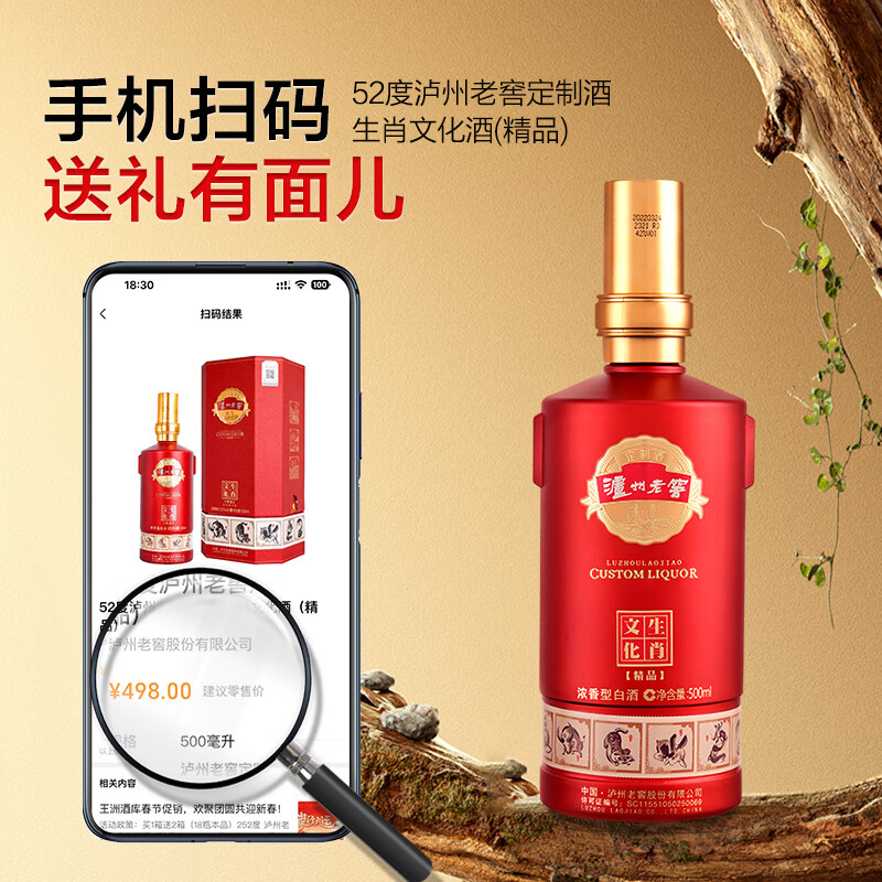 泸州老窖 生肖文化酒 精品 52度 浓香型白酒 500ml*1瓶价格:82.00元!