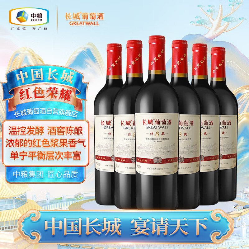 长城 耀世东方 特藏8橡木桶解百纳干红葡萄酒 750ml*6瓶 整箱装价格:530.00元!