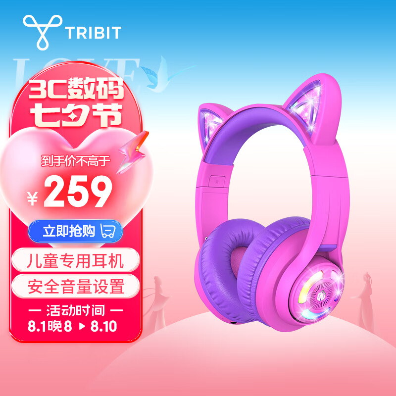Tribit 儿童蓝牙耳机头戴式网课英语学习音乐低分贝呵护听力舒适耳机生日礼物价格:259.00元!