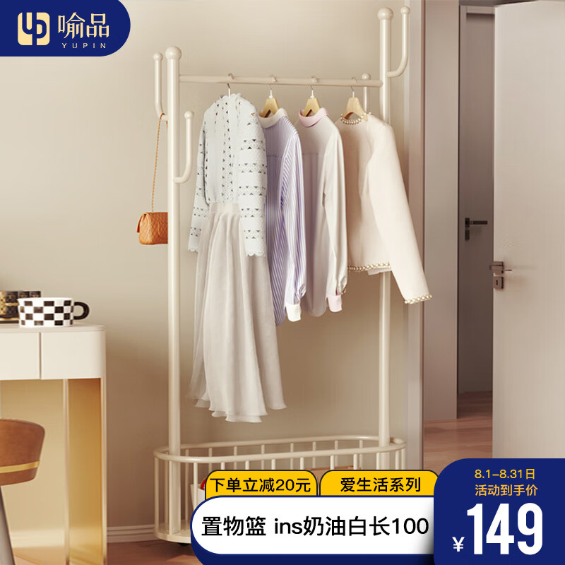 喻品衣架落地卧室挂衣帽架客厅单杆可移动晾衣收纳架子YJ055奶白1米价格:169.00元!