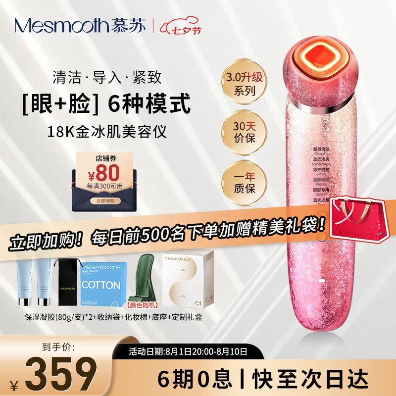 MESMOOTH慕苏美容仪器脸部按摩仪淡纹家用洁面部导入仪眼部嫩肤清洁礼物送女友 星钻红Pro(重磅上新)价格:449.00元!