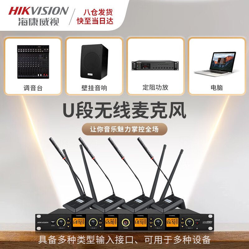 海康威视(HIKVISION)一拖四无线麦克风桌面长杆鹅颈话筒UHF高保真抗干扰自动对频防啸叫会议室主席台演讲培训广播价格:1630.00元!