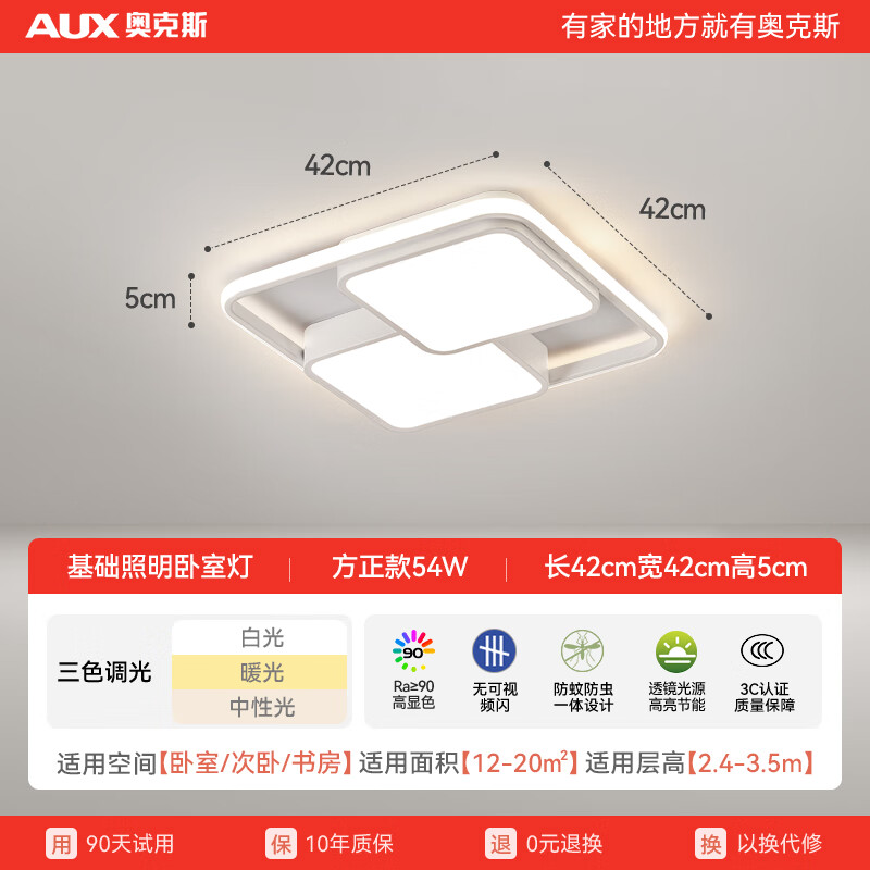 奥克斯(AUX)吸顶灯led卧室灯具客厅灯饰书房阳台灯薄款北欧现代简约ZH-54WS-G价格:212.85元!