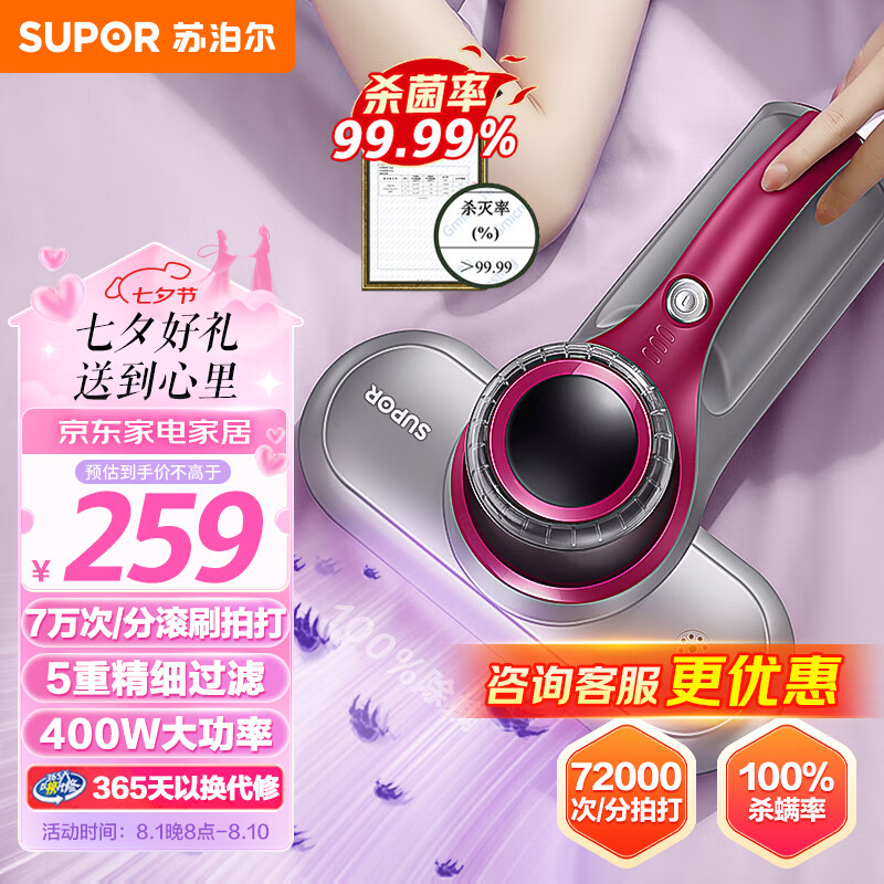 苏泊尔 (SUPOR )除螨仪手持家用吸尘高频双拍打深层次除螨 紫外线杀菌除螨仪 VCM05S价格:259.00元!