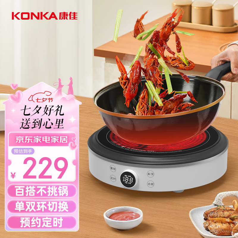 康佳(KONKA)电陶炉 电磁炉家用 电茶炉光波炉红外炉大功率不挑锅低辐射 KES-W22CS16价格:229.00元!