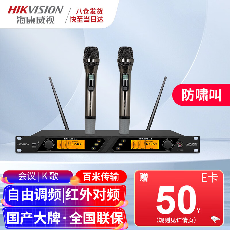 海康威视(HIKVISION)手持一拖二无线麦克风专业会议演讲UHF直播话筒百米传输防啸叫舞台唱歌家用主持培训婚庆晚会KTV价格:800.00元!