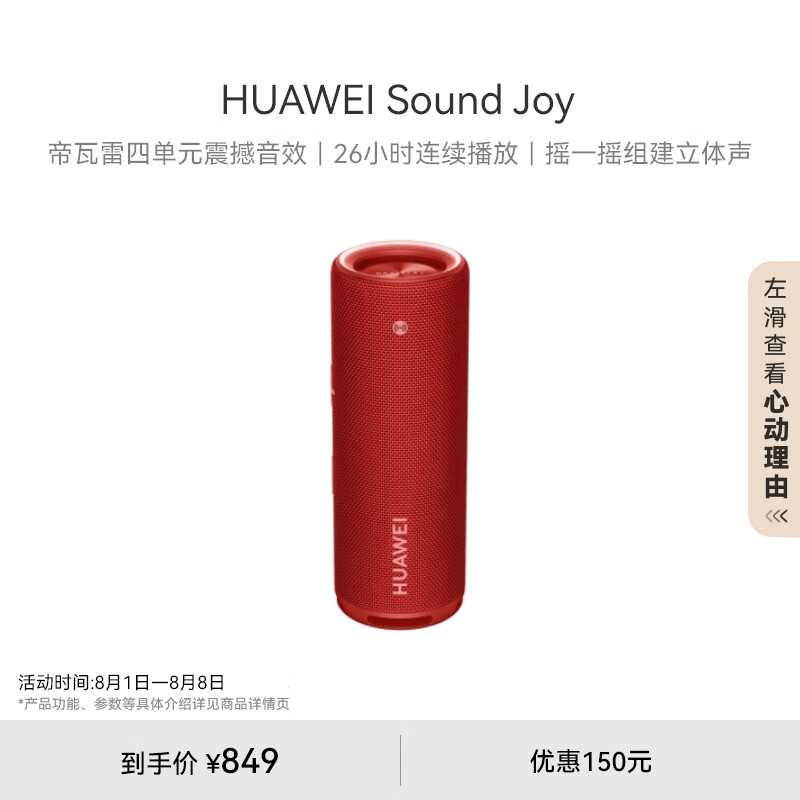华为Sound Joy 便携式智能蓝牙音箱 电脑音响 两台组建立体声 26小时长续航户外音箱 珊瑚红价格:769.00元!