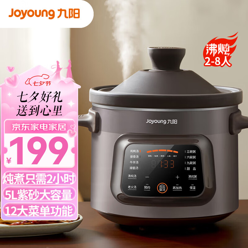 九阳(Joyoung)电炖锅5L大容量电炖锅炖汤锅煲汤锅燕窝炖锅煮粥锅可预约GD505 沸炖系列价格:199.00元!