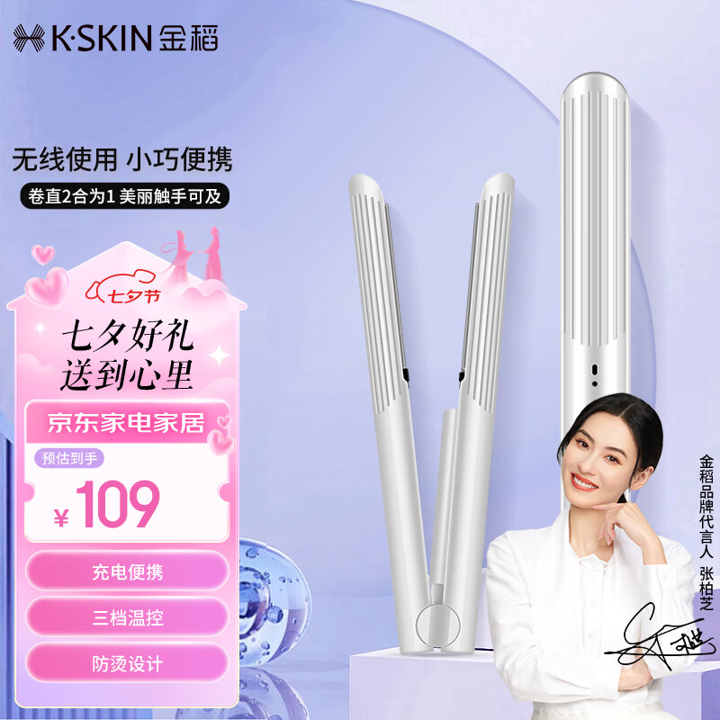 金稻直板夹无线充电夹板卷发棒卷直两用男女小熨板直发电夹板烫发棒神器KD386白色 七夕礼物女价格:139.00元!