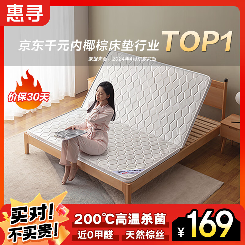 惠寻 京东自有品牌 椰棕床垫硬棕垫薄床垫偏硬1.5米*2米5cm厚折叠价格:189.00元!