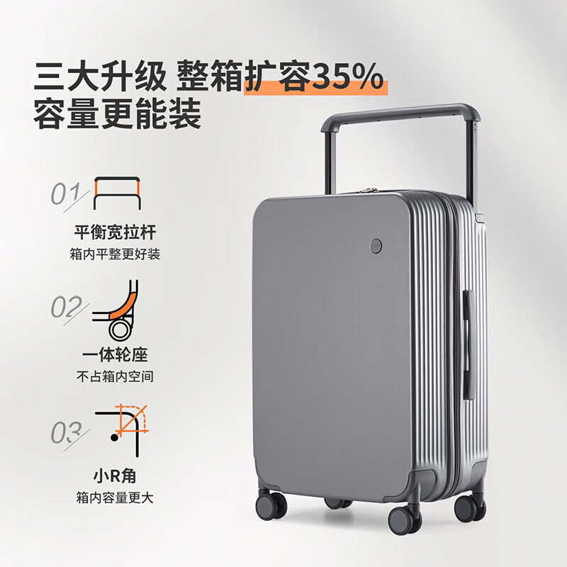 米熙高颜值宽拉杆登机箱20英寸行李箱大容量密码箱子男旅行箱女矿岩灰价格:409.00元!