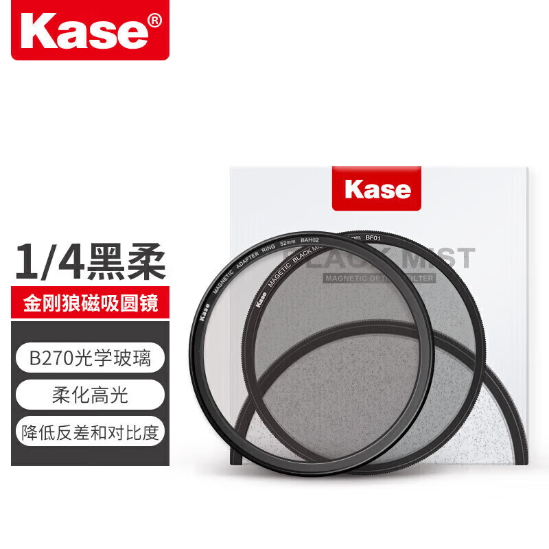 卡色(Kase)金刚狼磁吸黑柔1/4柔光镜52mm柔焦镜 朦胧镜 人像美化滤镜保护镜 梦幻镜 黑柔滤镜+磁吸转接环价格:234.00元!