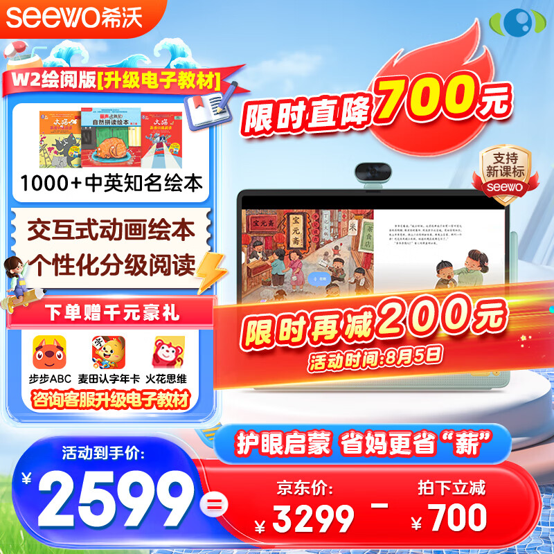希沃学习机W2绘阅版 护眼学习平板家教机 AI学生平板 6G+128G 薄荷绿【升级电子教材】资源同探索版价格:2799.00元!