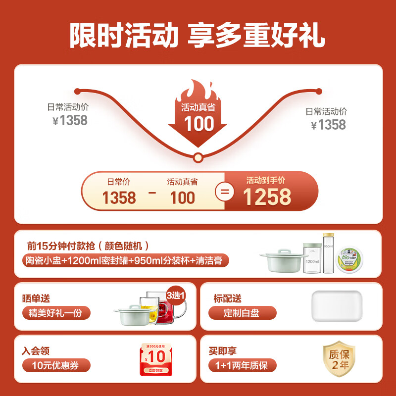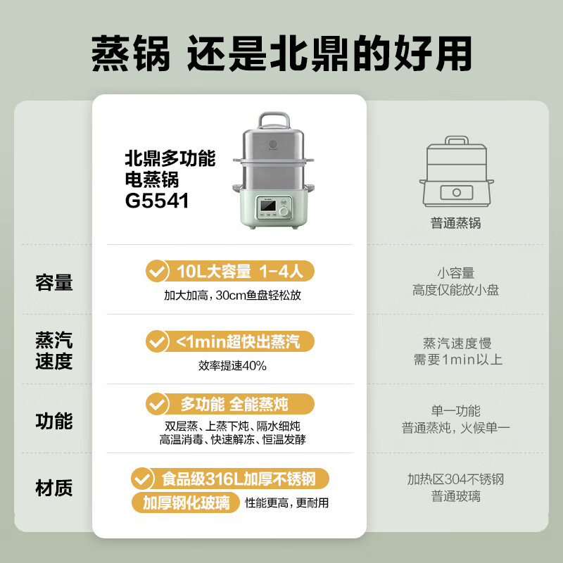 北鼎(Buydeem)电蒸锅多功能锅汽锅蒸炖煮一体家用大容量多用途二层预约保温婴儿适用自动免看火G5541 七夕节礼物价格:1358.00元!