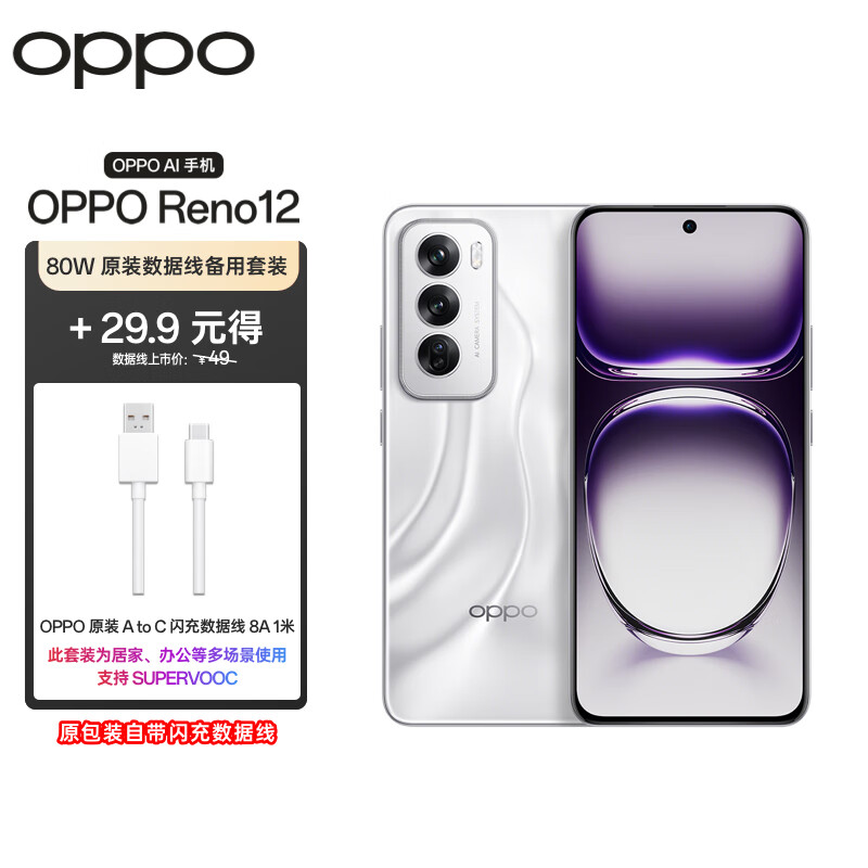 OPPO Reno12 12GB+256GB 千禧银 超美小直屏 天玑8250星速版旗舰芯拍照手机【80W原装数据线备用套装】价格:2728.90元!