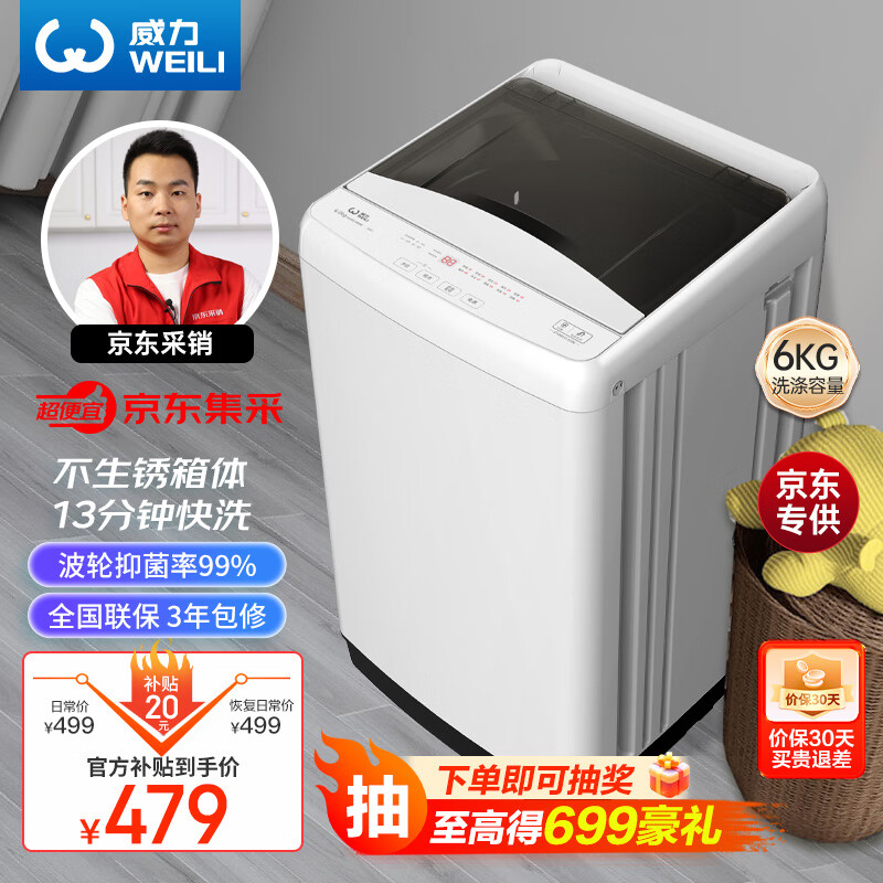 威力(WEILI)6公斤 波轮洗衣机全自动 洗衣机小型 租房宿舍神器 以旧换新(雅白色)XQB60-6099B价格:479.00元!