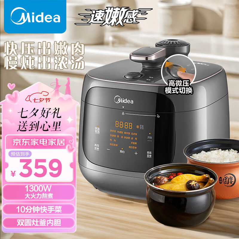 美的(Midea)电锅速嫩感高压锅家用锅10分钟一道菜电饭锅双智能分屏圆灶釜双内胆MY-C5933价格:359.00元!
