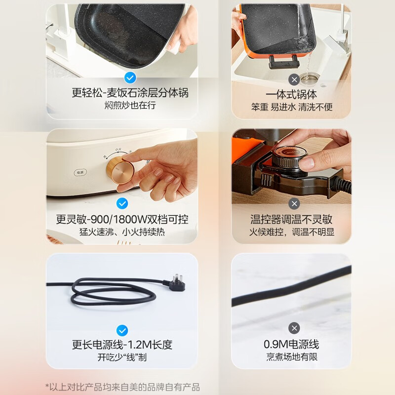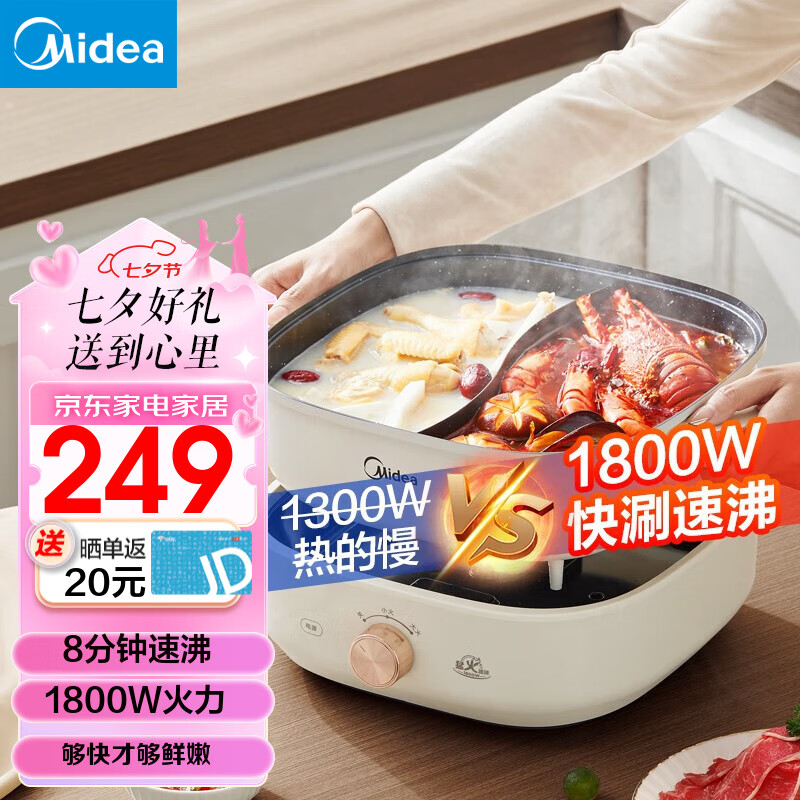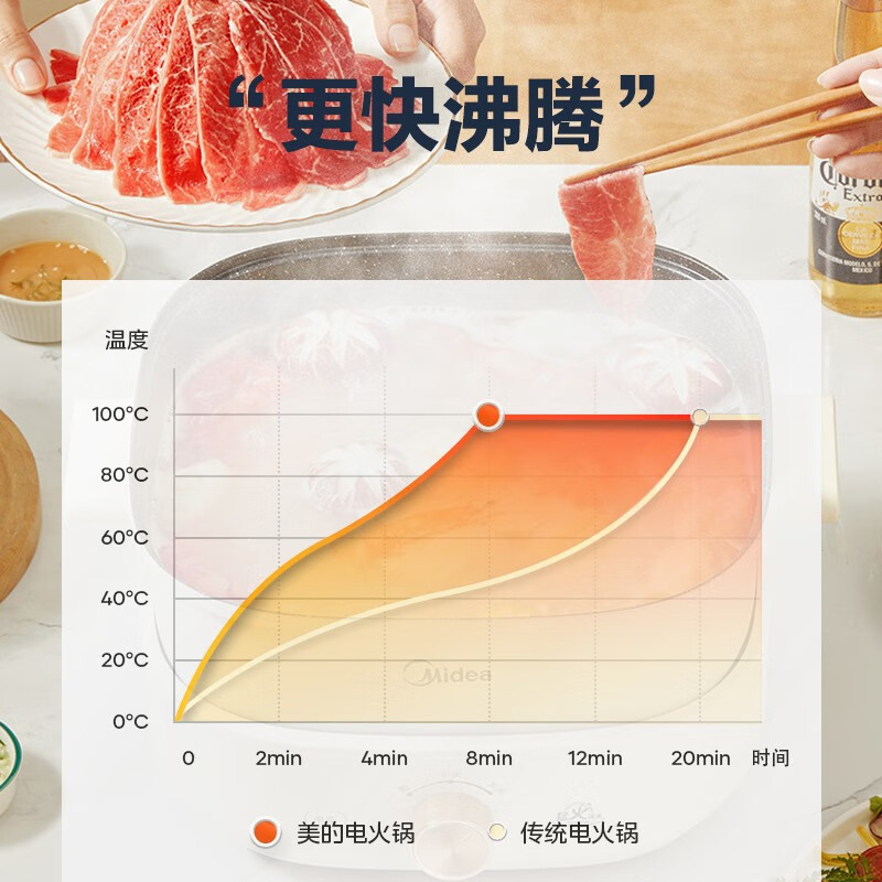 美的(Midea) 电火锅 电煮锅 电炒锅多功能用途锅电煎锅家用一锅多用 速沸火锅专用锅6L大容量 鸳鸯锅 HGS303002 6L价格:369.00元!