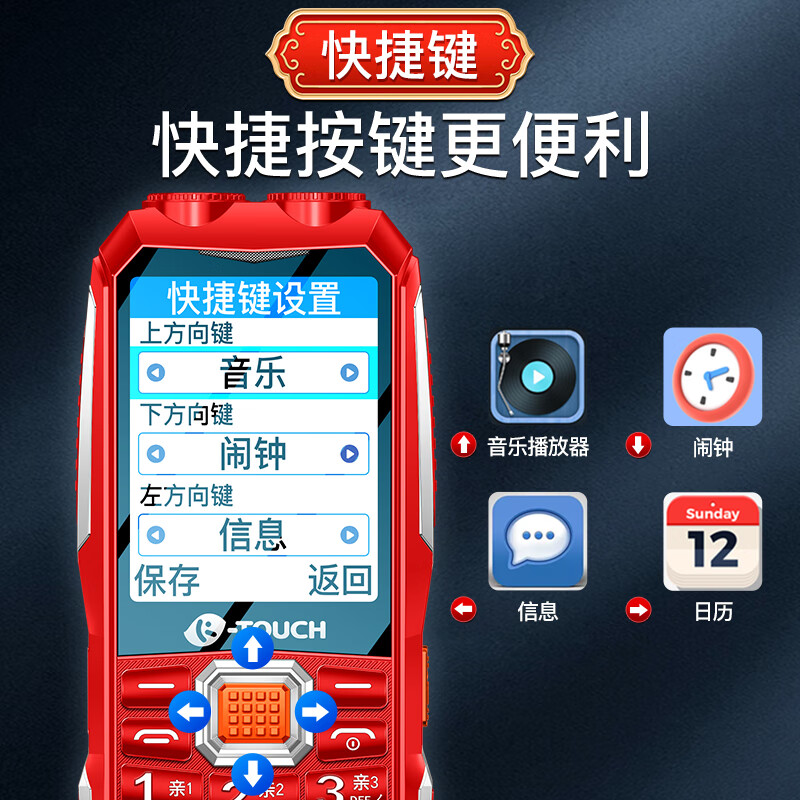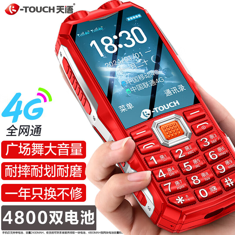 天语(K-Touch)Q31 通4G三防老人手机大电池超长待机移动联通电信直板按键功能机老年人手机红色价格:128.00元!