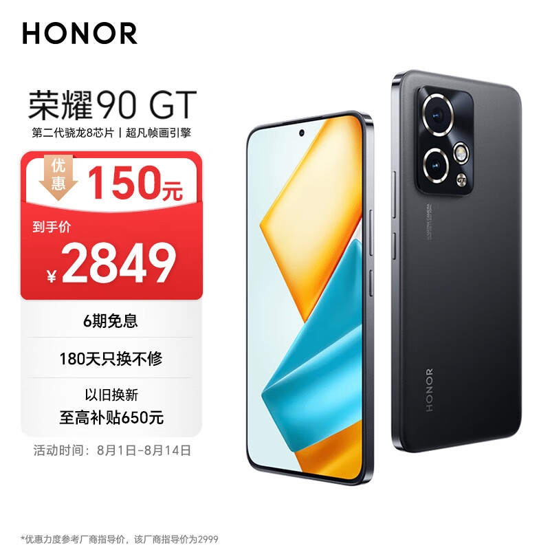 荣耀90 GT 第二代骁龙8旗舰芯 超凡帧画引擎 荣耀绿洲护眼屏 5000mAh轻薄长续航 OIS 16+512 星曜黑 5G直屏价格:2849.00元!