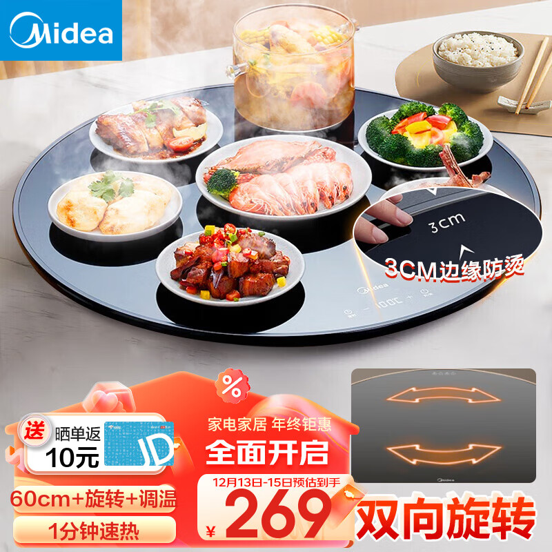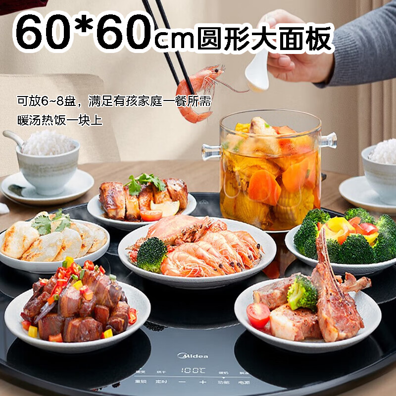 美的(Midea)暖菜板 加热桌垫 热菜板饭菜保温板家用 1分钟速热保温菜板热饭不挑锅具 方形调温/圆形转盘可选 【60cm旋转+调温】W5-012价格:399.00元!