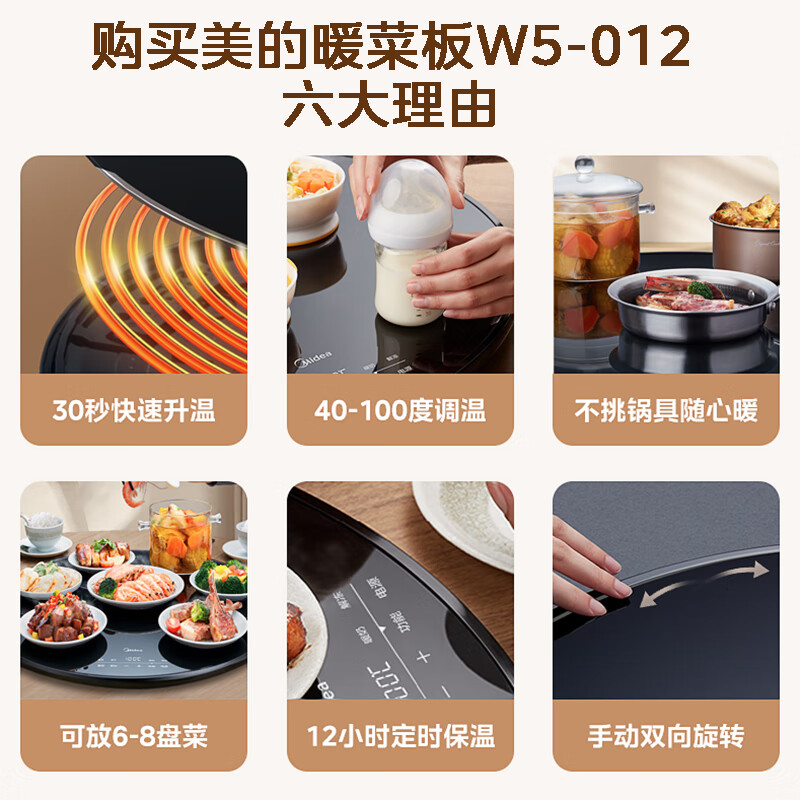 3、找了好久的暖菜板,一直没有合适的,要不是太贵,便宜的杂牌又不敢用。刚好看到美的这款,性价比高,又能365天换新,品质有保障,很好。