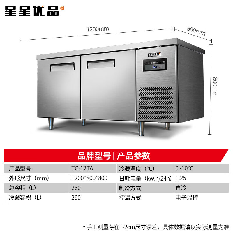 星星优品(XINGX·YOUPIN)操作台冰柜冷藏工作台商用冷冻不锈钢平冷厨房卧式冰箱 水吧台冰柜奶茶店设备 1.2*0.8*0.8 冷藏(铜管高配款)价格:1699.00元!