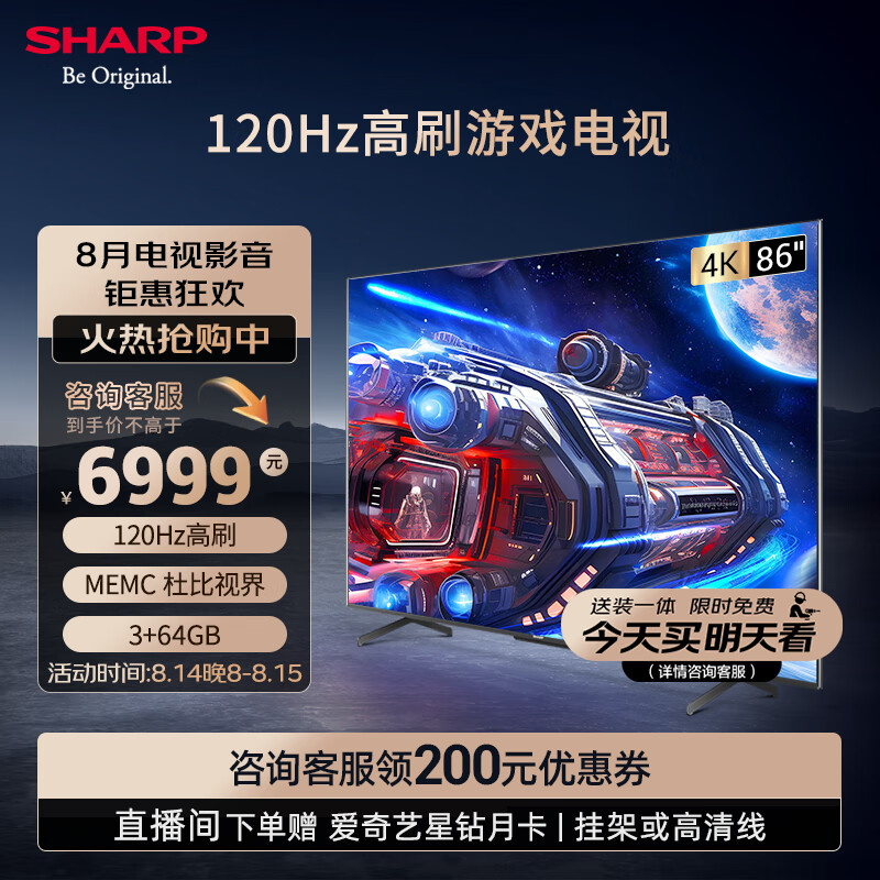 SHARP夏普86英寸屏120HZ高刷 杜比视界 无镉广色域4K高清智能WIFI液晶平板电视 C86GM6000A价格:7199.00元!