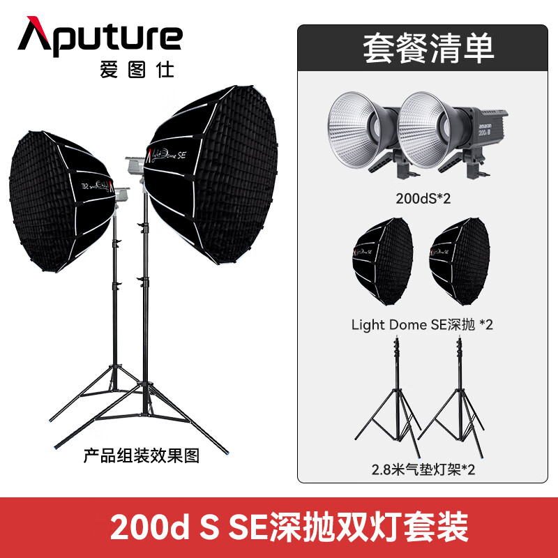 爱图仕(Aputure)艾蒙拉 200d S直播补光灯LED摄影灯电商带货服装美食绿幕直播设备全套 200d S SE深抛双灯套装价格:5096.00元!