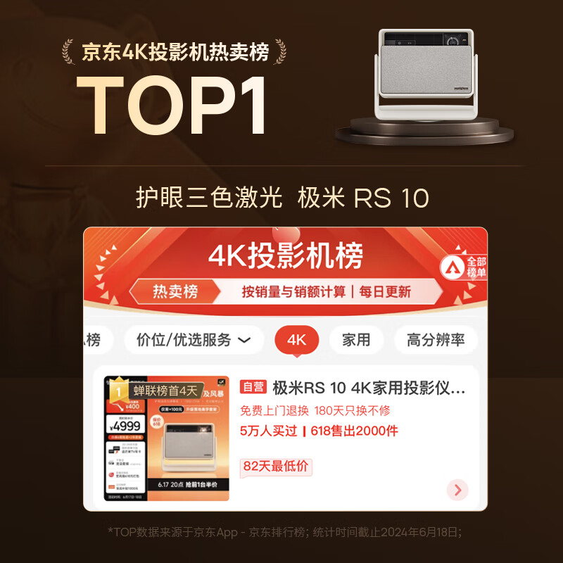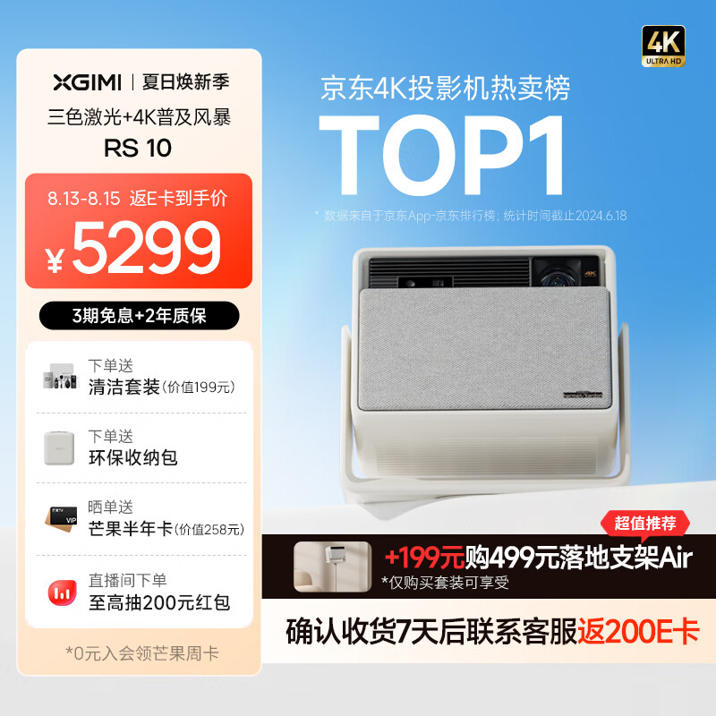 极米RS 10 4K家用投影仪 全新一代三色激光 灵动云台 1950CVIA 智能电视影院 (极米H6重磅升级)价格:5499.00元!