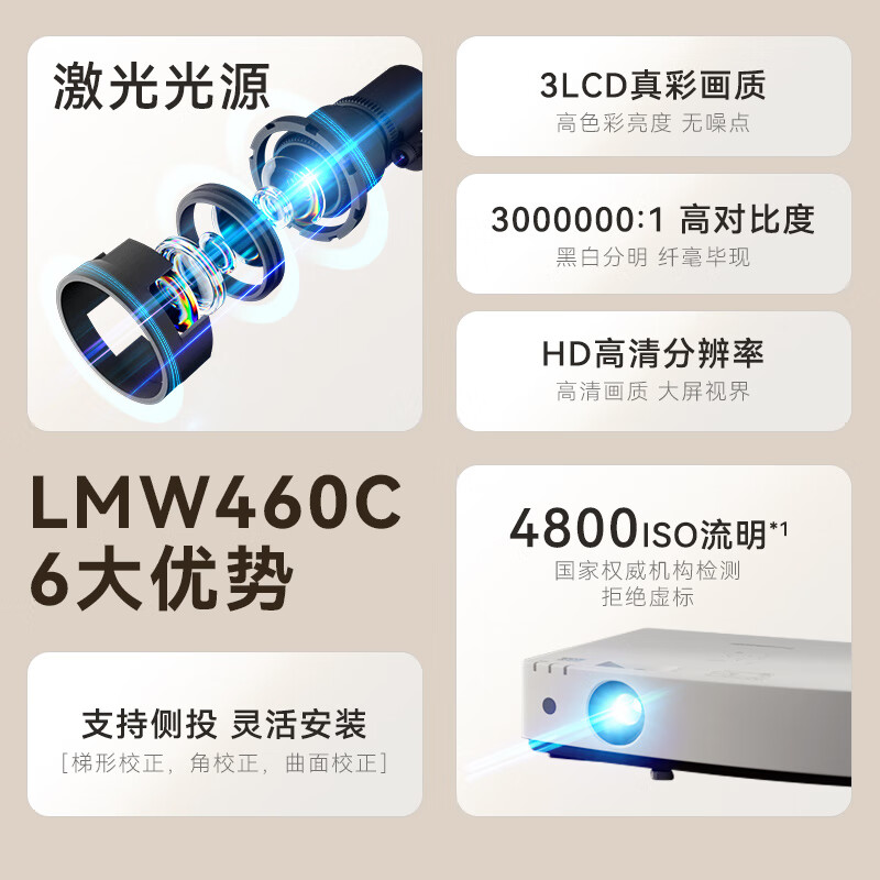 松下(Panasonic)PT-LMW460C激光投影仪 家用办公白天会议室专用家庭影院培训教学商务机(WXGA 4800流明)价格:11888.00元!