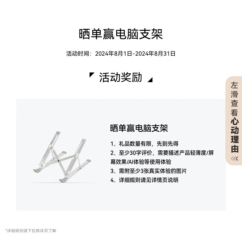 400nits),高屏占比(≥85%),高色域(100%sRGB)'>屏幕特性:OLED,触摸屏,高分辨率(2K以上),护眼认证,高色准(△E<1),高亮度(全屏>400nits),高屏占比(≥85%),高色域(100%sRGB)